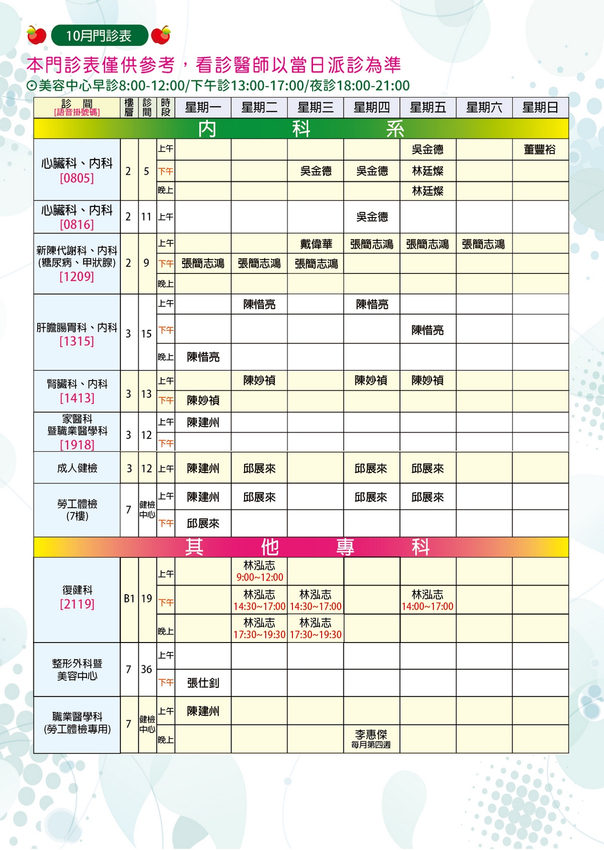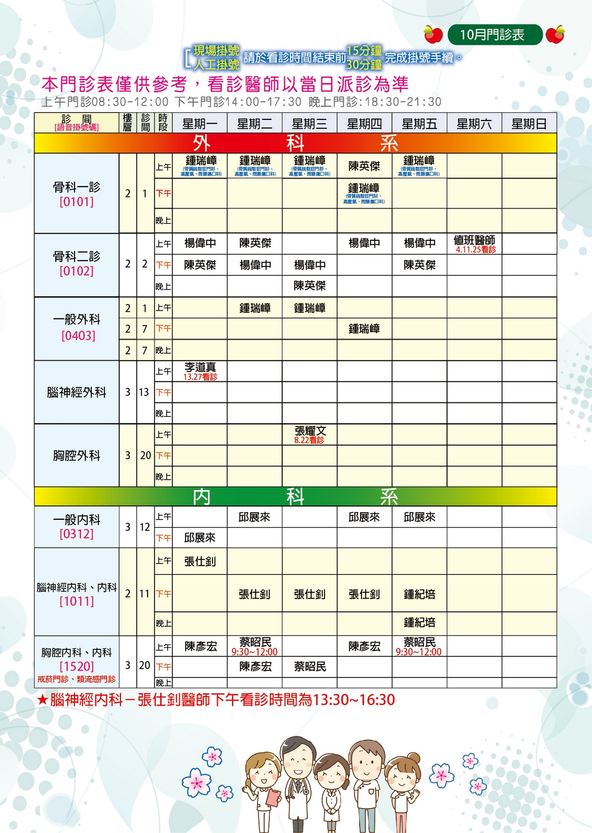 下載【114年10月份門診時間表】